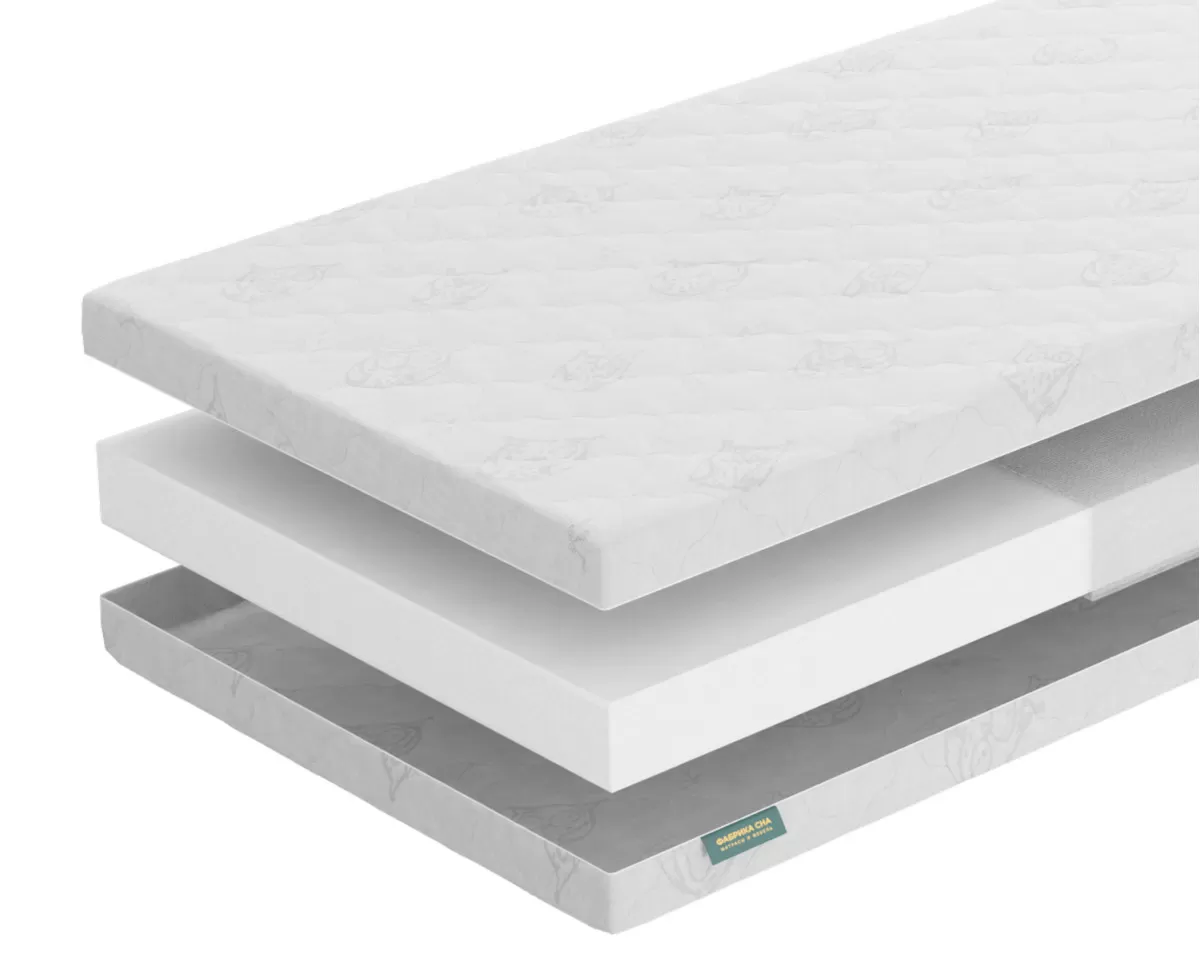 Невысокий среднежесткий матрас из монолита упругой анатомической пены обеспечивает отличную поддержку тела в естественном положении.