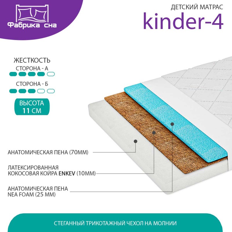 В состав матраса входят гипоаллергенные и безопасные материалы, а также съемный чехол на молнии.