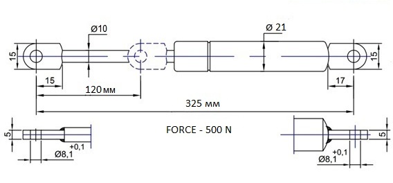 Основная область применения газ-лифта – подъем оснований (сидений) диванов и кроватей. Межосевое расстояние в газовом лифте 325 мм.