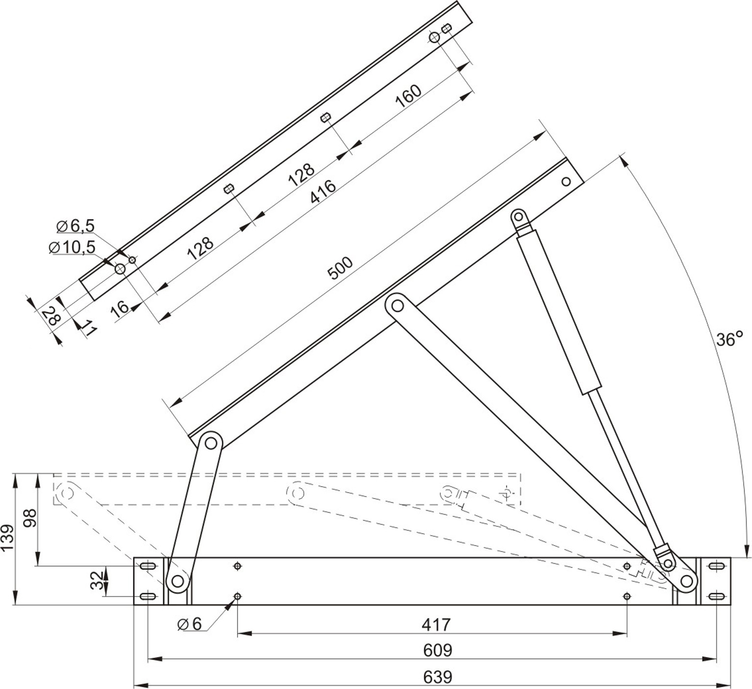 Размеры и габариты механизма см. на рисунке.