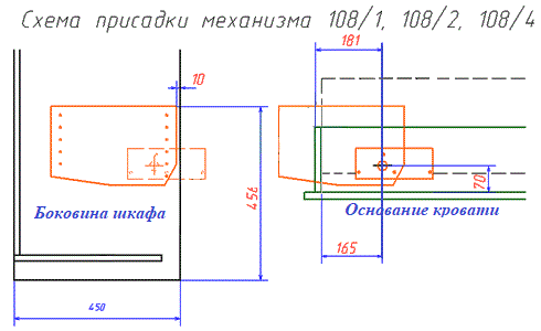 Предназначен для кроватей с шириной спального места до 900 мм. Толщина механизма (зазор между бортом кровати и боковиной шкафа) 34 мм.