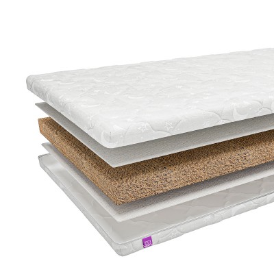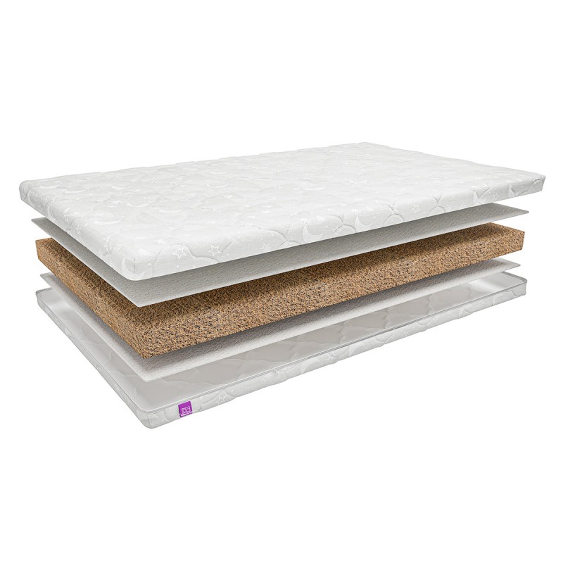Вместо пружинного блока в основе матраса использован современный инновационный материал бикокос — экологически чистый, гипоаллергенный, нетоксичный материал, обладающий высокими поддерживающими качествами и обеспечивает правильное положение позвоночника ребенка во время сна.