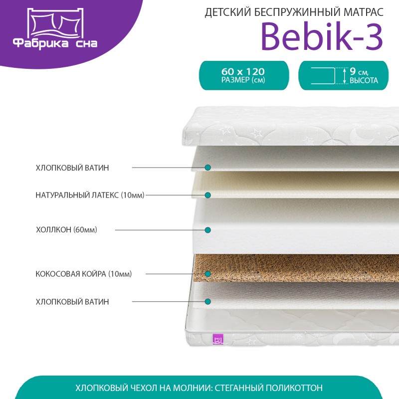 Беспружинный матрас Bebik-3 станет любимым местом отдыха ребенка.