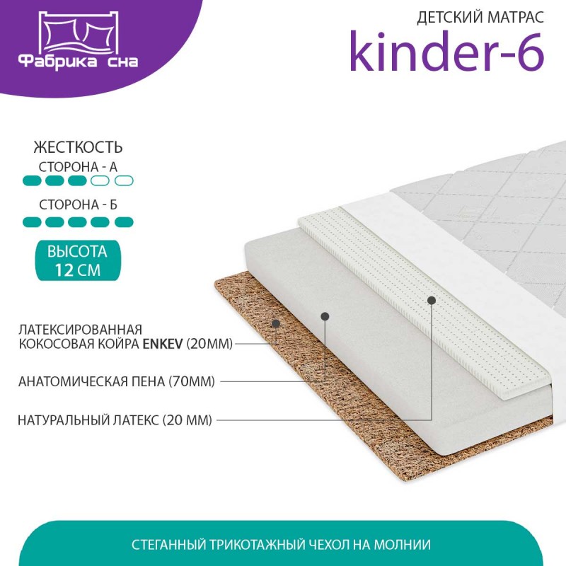 Благодаря качественным материалам Kinder-6 долговечен и воздухопроницаем, что несомненно важно для детского матраса.