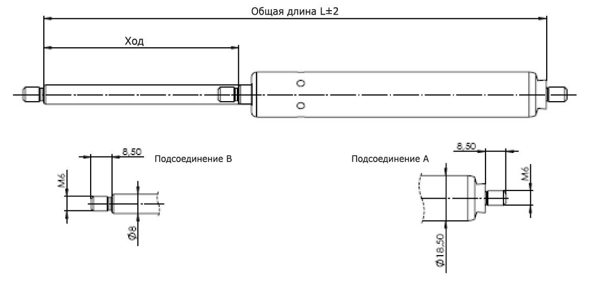 -Диаметр цилиндра/штока 18,5 мм/ 8 мм