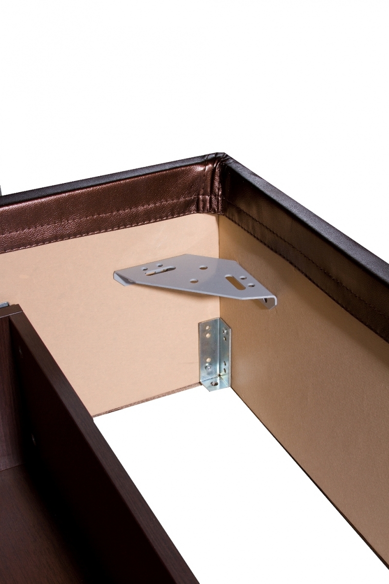 Стяжка угловая 617Д (1 стяжка+2 демпфера ) служит как для дополнительной связки боковых царг кровати с изножьем и изголовьем, так и для опоры на них ортопедического основания матраса. В зависимости от конструкции, на одну кровать идут либо две, либо четыре угловые стяжки. Так, в случае если кровать оборудуется ортопедическим основанием с подъемным механизмом, то устанавливается две стяжки у изножья, если же использовать подъемный механизм не планируется, целесообразно использовать стяжки и в месте крепления боковых царг и изголовья.