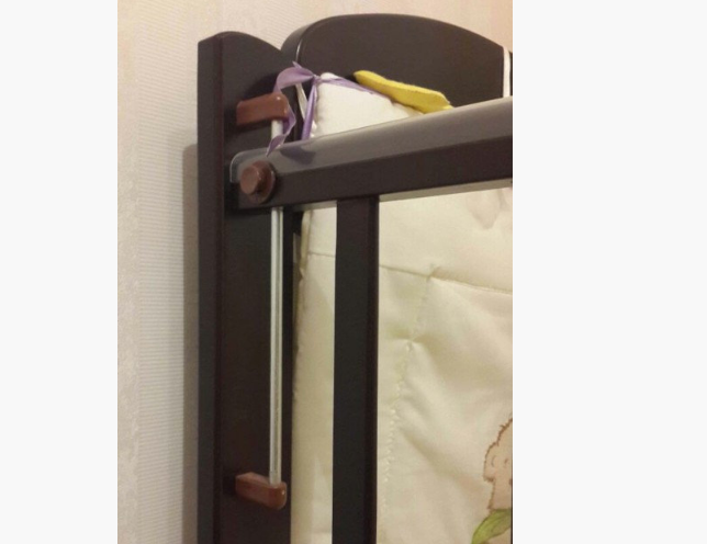 Механизм подъема-опускания передней стенки детской кровати с кнопкой.