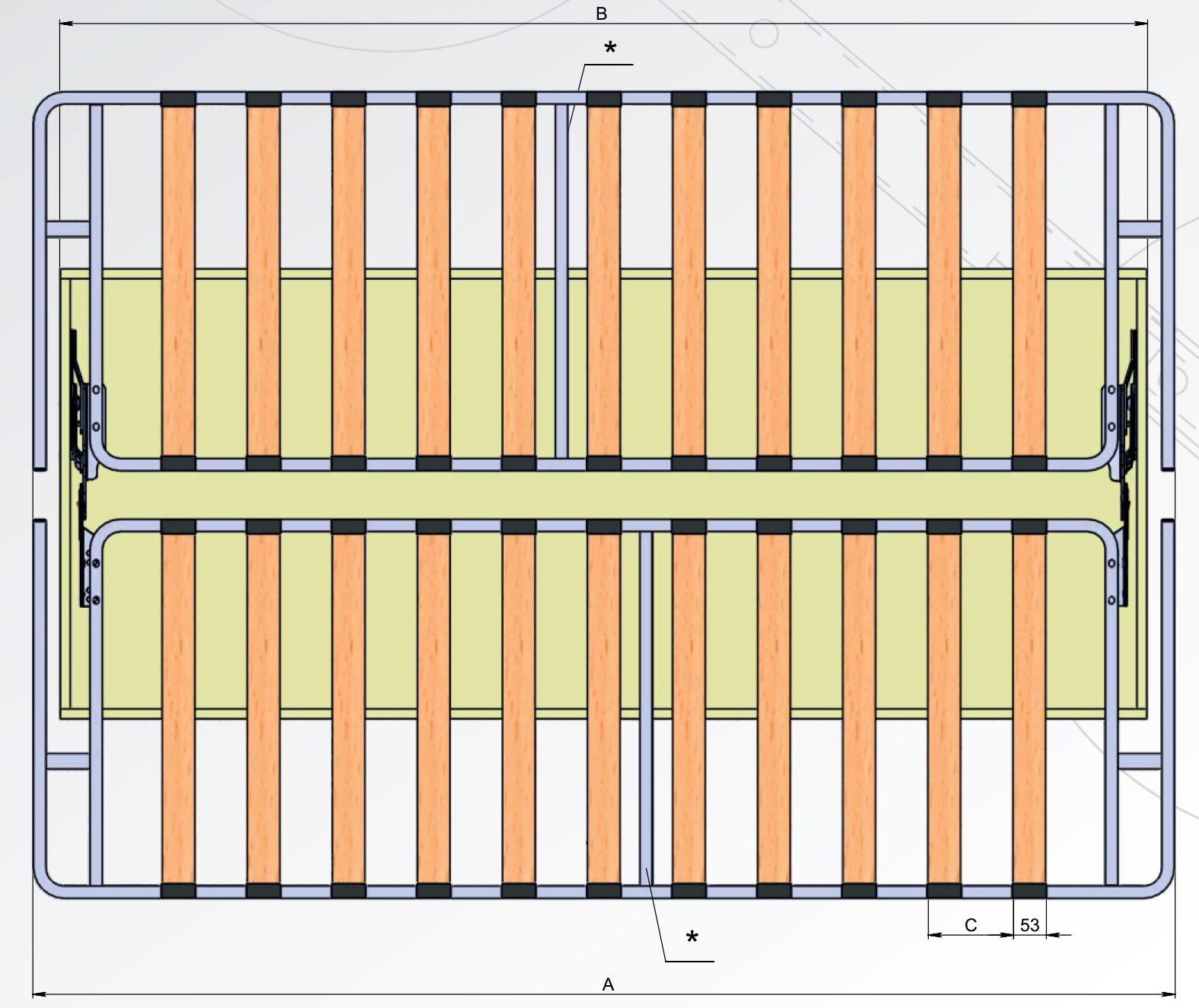 - Размер рамки для дивана: 620х1850/1890 мм из трубы 30х20х1,2 мм, имеет 11 березовых лат в накладных латодержателях.