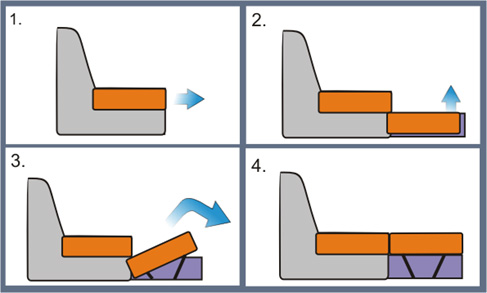 Диван преобразуется в кровать просто: основная плоскость выкатывается из-под основы. Чтобы разложить диван, необходимо просто вытянуть из-под него дополнительные секции. В сложенном виде выкатные диваны очень компактны и могут разместиться даже в совсем маленькой комнате, а в разложенном состоянии – это широкое и ровное спальное место. Недостаток выкатного механизма общий для всех моделей: при трансформации дивана в кровать ничто не должно мешать его лёгкому скольжению по полу, иначе вы рискуете испортить механизм, прилагая к раскладыванию дополнительные усилия. Кроме того, рекомендуется остановить свой выбор на модели с резиновыми или каучуковыми колесиками, которые не оставят на полу царапин и потертостей. Также, по замечанию экспертов, около 70% "выкатных" диванов грешат перепадом высот у спального места. Поэтому при покупке обратите особое внимание на равномерность мягких частей сборного матраца.